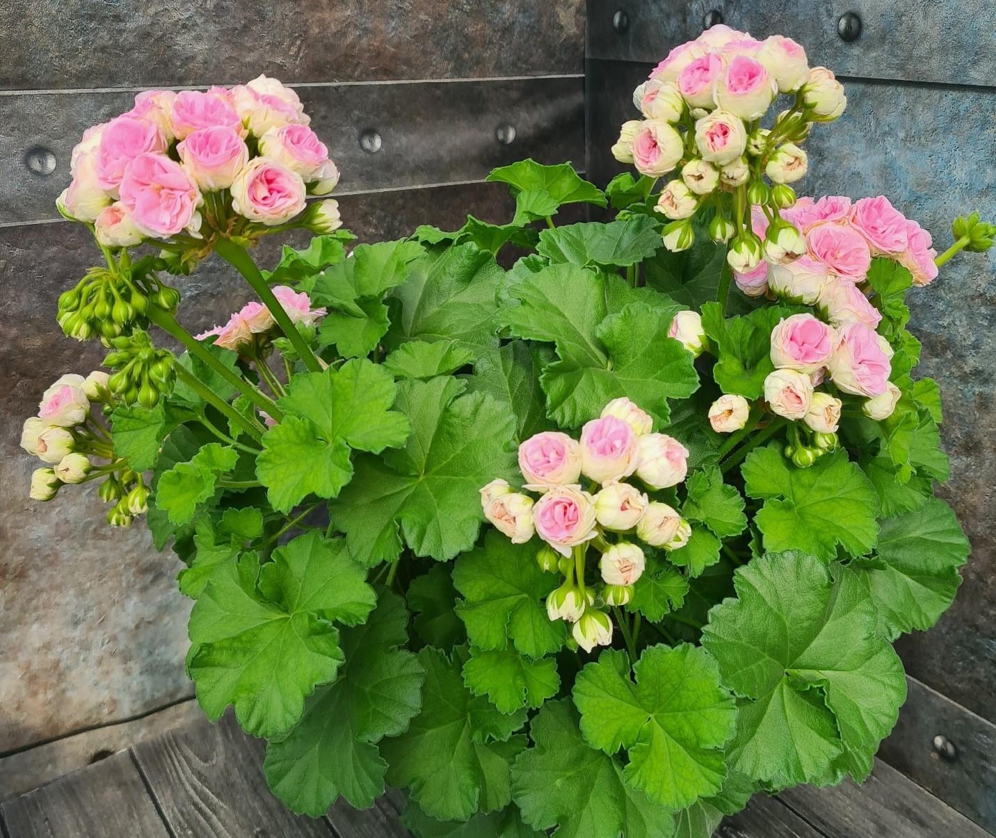 Зональная пеларгония ЮВ Дайнерис — это эффектный сорт с уникальными окрасом и формой куста, называемый "кубышками". Обильное цветение и оригинальные листья!