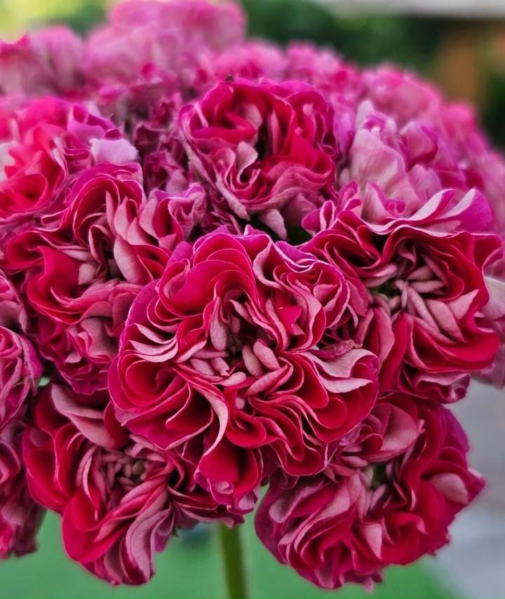 Пеларгония зональная ну просто шикарная. Куст крупный и сильный. Цвет винно-бордовый со светлой изнанкой махровые-набитые. Очень обильное цветение. |